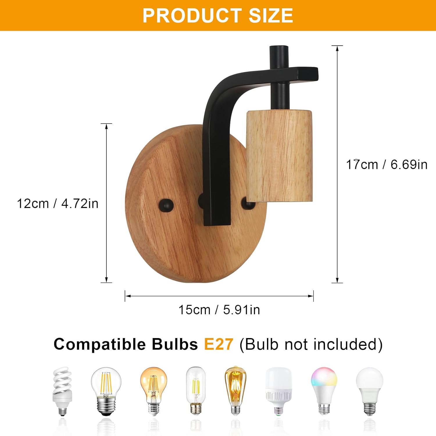 Jede Wandleuchte ist mit einer Standard E27 Fassung ausgestattet und unterstützt Leuchtmittel bis maximal 60W (nicht im Lieferumfang enthalten). Sie können verschiedene Leuchtmittel wie LED, Halogen- oder Vintage-Lampen verwenden, um die gewünschte Lichtstimmung zu erzeugen. Dieses flexible System ermöglicht es, die Beleuchtung individuell an unterschiedliche Räume und Bedürfnisse anzupassen.