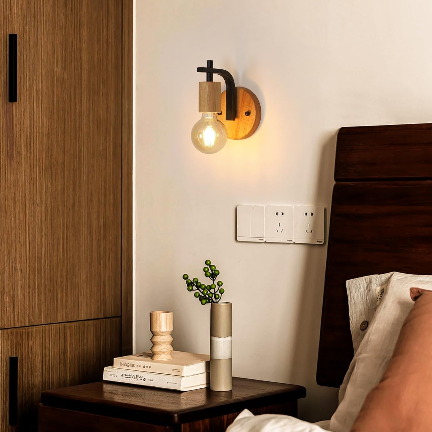 Die Basis besteht aus hochwertigem Massivholz mit natürlicher Maserung, das gleichzeitig leicht und stabil ist. Der Metallarm wurde mit einer schwarzen Hochtemperatur-Sprühbeschichtung behandelt, die eine gute Beständigkeit gegen Korrosion, Rost und Verblassen gewährleistet. Die Kombination aus Holz und Metall verleiht dieser industriellen Wandleuchte eine ausgewogene Optik zwischen Natürlichkeit und moderner Eleganz.