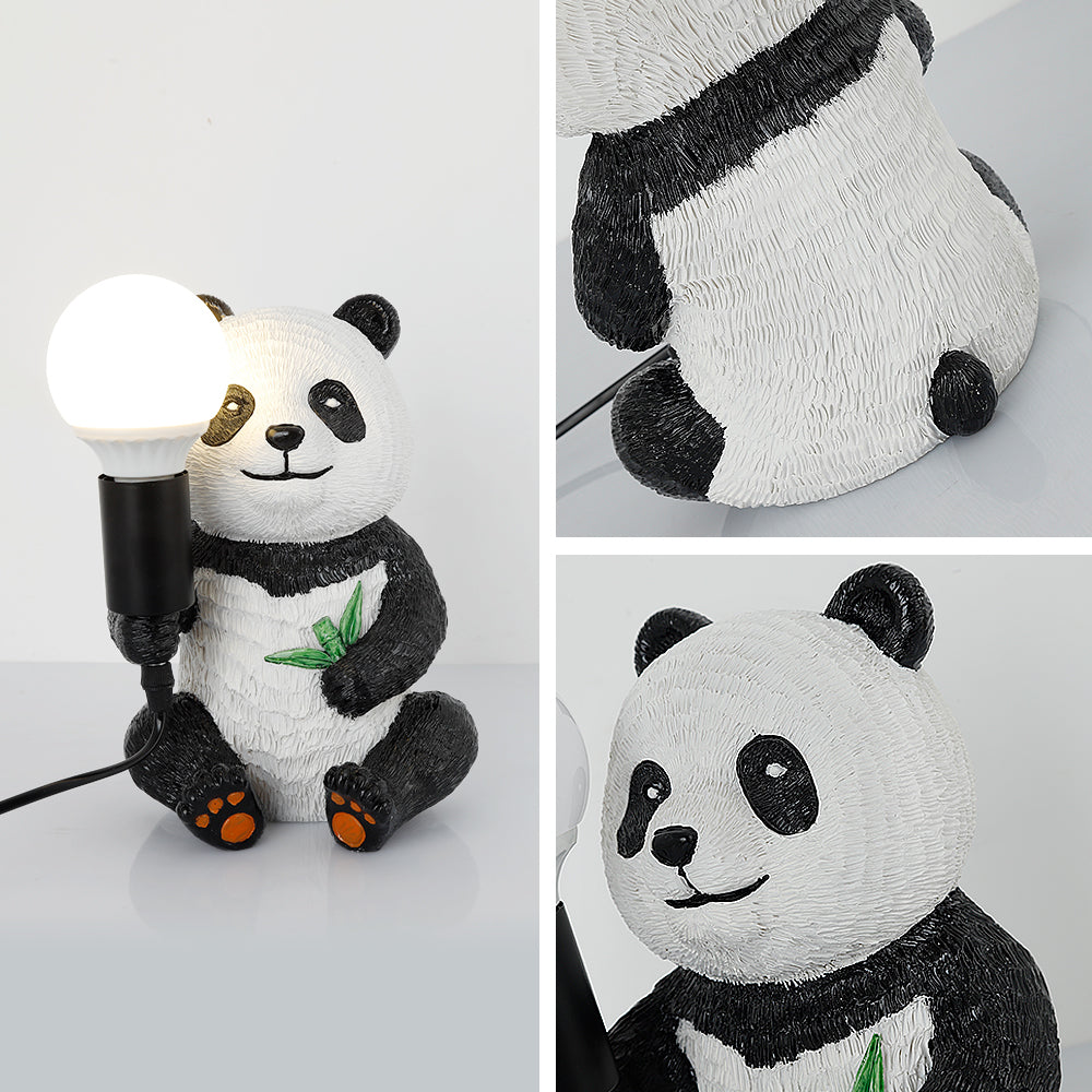 Panda-Harz-Tischlampe hält Glühbirne in der Hand, reines und einfaches Aussehen, sieht echt aus. Diese niedliche Panda-Schreibtischlampe ist das beste Geschenk für Kinder und Erwachsene.