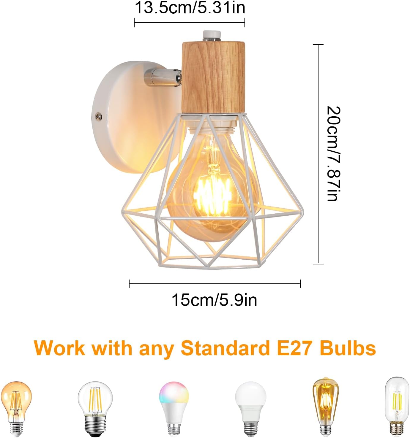 Die Leuchte ist mit einer Standard-E27-Fassung ausgestattet und eignet sich für LED-, Edison- oder Glühbirnen bis 60W (Leuchtmittel nicht enthalten). Auch dimmbare Leuchtmittel sind in Kombination mit einem geeigneten Dimmer verwendbar (nicht enthalten).