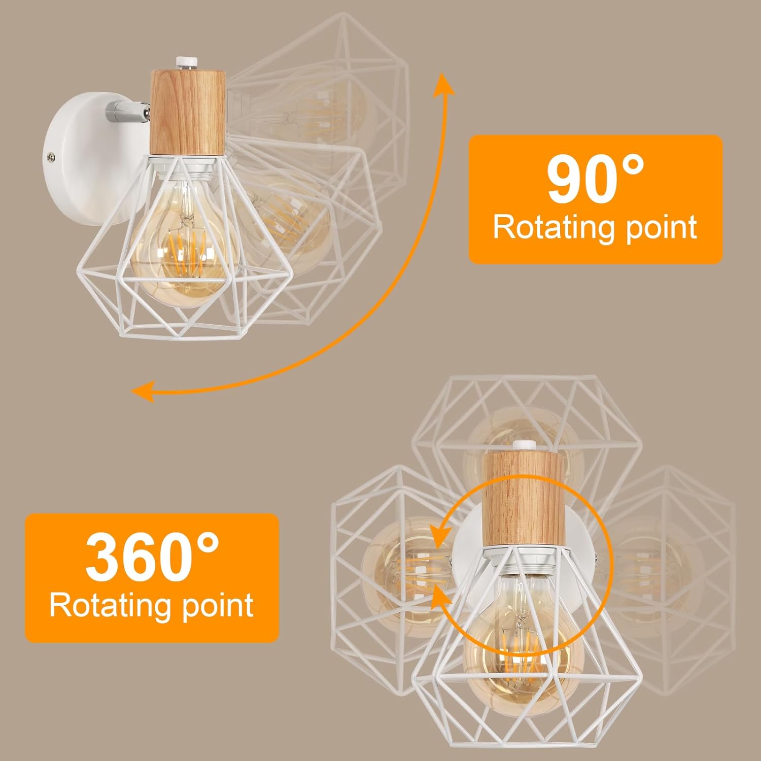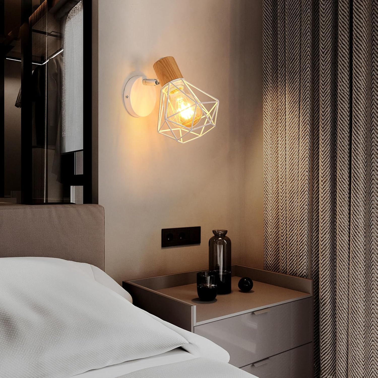 Diese Wandleuchte im Retro-Industriedesign verfügt über einen einzigartigen weißen Gitterschirm, kombiniert mit einem stabilen Holzsockel in Naturfarbe. Das offene Design erzeugt ein warmes und atmosphärisches Lichtspiel – perfekt als dekoratives Highlight in jedem Raum.